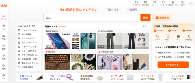 Alibabaグループが運営する中国国内向けのB2Bプラットフォームです。中国語がメインですが、Alibabaよりもさらに低価格で仕入れられる傾向があります。中国国内取引に特化しているため、国際配送や決済の面で中国輸入代行業者を介することが一般的です。