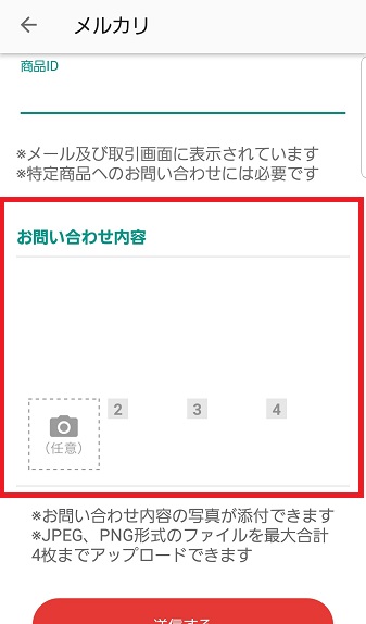 もう一つの方法は、問い合わせからメルカリ事務局へ通報する方法です。