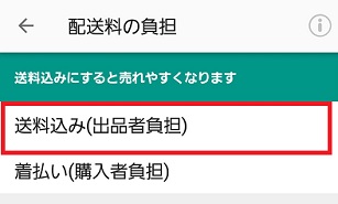 1.商品を出品する際に、「配送料の負担」を「送料込み(出品者負担)」にします。