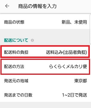 らくらくメルカリ便を利用するためには、配送料の負担が出品者負担になっている必要があります。